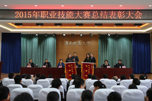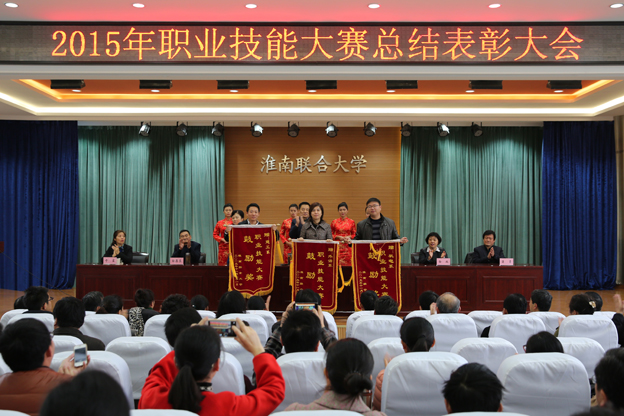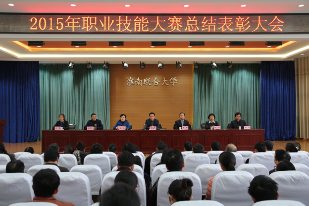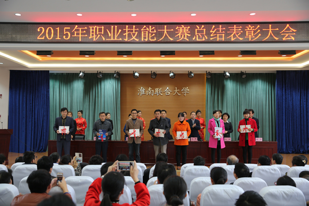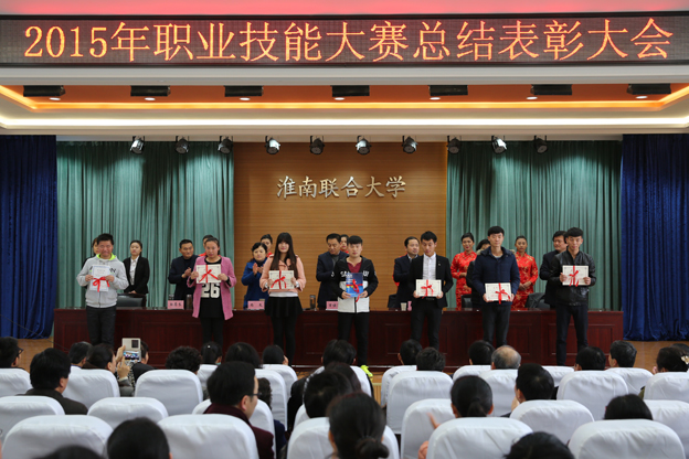 副校长尚文首先宣读了《关于表彰2015年技能大赛获奖学生、指导教师和教学单位的决定》。校领导为受到表彰的老师和同学们颁奖。受表彰的教学单位、指导教师及学生代表分别上台发言。2015年我校共获得全国职业院校技能大赛二等奖1项,省级各类技能大赛一等奖5项、二等奖11项、三等奖35项。