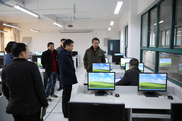 下车伊始,检查组在校领导的陪同下,按照国家教育考试中心有关全国计算机等级考试相关要求,认真检查了学校的计算机标准化机房、监控室、候考室、计算机设备等相关设施,之后在实训楼会议室召开了专题会议。会议由副校长白存良主持。