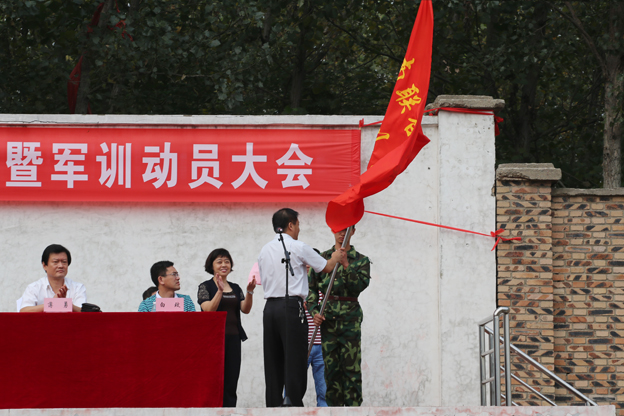 校党委书记万继军向2015级参训学员授军训旗。