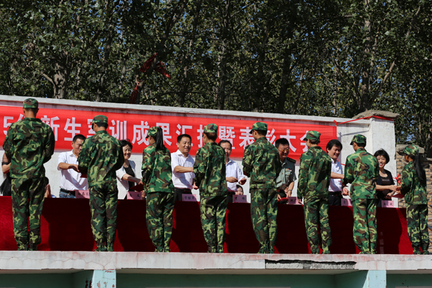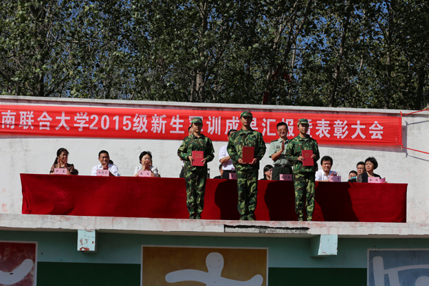 副校长白存良宣读了2015级新生军训表彰决定。校领导分别向获得“优秀教官”、“优秀学员”、“优秀营连”代表颁发荣誉证书。
