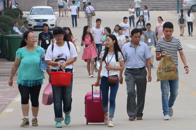 新生及家长的耳边不时地传来这样暖人心际的声音,让人倍感亲切。来自校学生会的志愿者们、各系的学生代表冒雨等候接待,用热情的服务来回应学生和家长们的咨询。积极帮助学生及家长搬运行李、指引新生办理入学手续,并详细地介绍校园环境等,让新生充分感受到了大家庭一般的氛围和细心周到的服务。一位新生如是说:“看到这样热情工作的学长学姐们,心里又感动又羡慕,希望明年可以向他们一样,为2016级新生服务。”