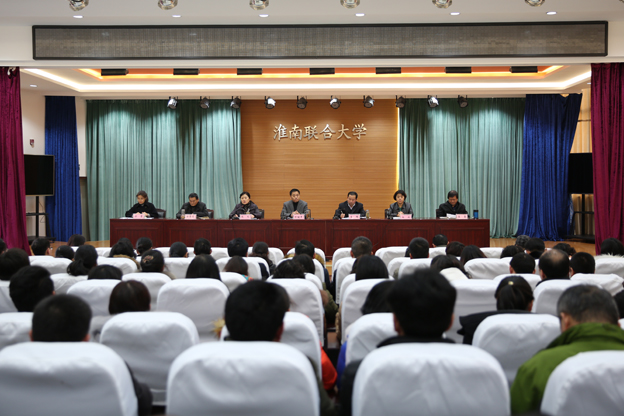 1月13日下午,我校在南区1号报告厅召开学期末工作会,总结本学期工作,安排部署期末及寒假工作。全体校领导出席会议,副高以上职称教师、副科级以上干部参加会议。党委书记万继军主持会议。