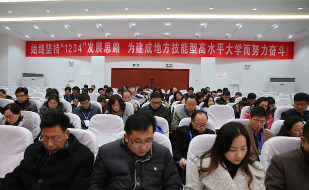 李辉向大会作了行政工作报告。报告从招生规模、提高教育教学质量、师资队伍建设、规范管理、校园安全稳定等五个方面回顾了2015年的主要工作。全面总结了学校“十二五”期间各项工作取得的新成绩。明确了 “十三五”规划的奋斗目标,要始终坚持“1234”发展思路——“一个目标、两个机制、三个重点、四个战略”。对2016年党政工作的总体要求和思路做出安排,重点做好九个方面的工作:继续做好招生工作、完善职教集团办学、增强学科专业实力、提高人才培养质量、提升科研创新能力、提升队伍综合素质、扎实做好学生工作、助力文明创建工程、认真推行依法办学。