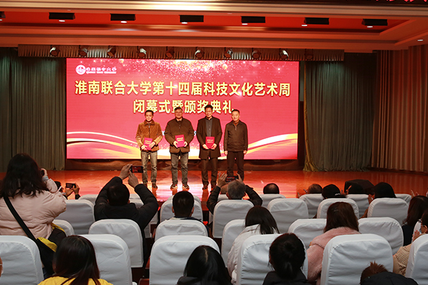 12月7日下午,我校在南区一号报告厅举行第十四届科技文化艺术周闭幕式暨颁奖典礼。校党委书记万继军,党委副书记倪刘根,副校长白存良,工会主席薄勇,纪委书记洪浩,副校长罗鸿,党委委员、宣传统战部部长史学丽,党委委员、组织人事部部长朱银斌出席闭幕式。学校中层干部和师生代表参加闭幕式。
