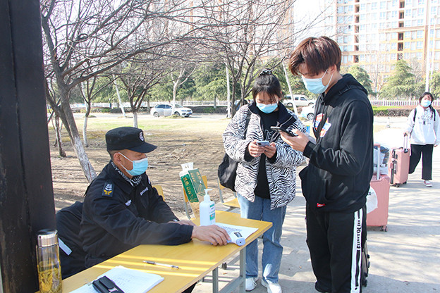 返校学生在工作人员的指引下,严格按照学校疫情防控相关要求,佩戴口罩、间隔一米排队,有条不紊地按照消毒测温、扫“安康码”、身份验证等返校流程,从专用通道有序入校。
