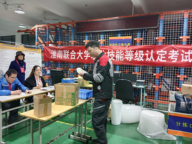 为切实提高快递从业人员的技能素质和水平,淮南市快递行业协会以务实举措全力推动快递员职业技能提升,与我校对接开展快递员认定考试。为做好此次认定考试工作,校领导高度重视,要求充分考虑快递员工作特点,结合快递员实际情况安排考试,为此学校将考试安排在晚上进行,避开快递员工作高峰时段。考试形式为机考+实操,考试内容涉及职业道德、快递业务基础知识、服务礼仪、安全知识、快递业法律法规、快件收派处理等专业知识和操作技能。考试过程中,考评员严守考评职责,各位考生沉着冷静,认真应考,整个考试过程秩序井然。