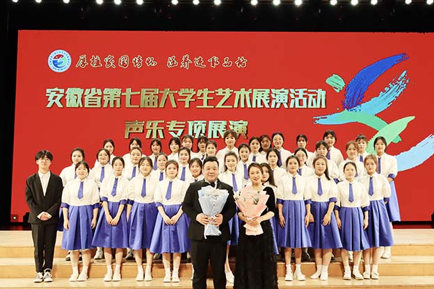 12月14日,安徽省第七届大学生艺术现场展演活动在滁州大剧院拉开了帷幕。我校由马进、张宇两位老师指导的合唱节目《雪花的快乐》从众多作品中脱颖而出,以声乐类甲组一等奖的优异成绩参加了艺术展演,充分展示了我校美育成果和艺术风采。