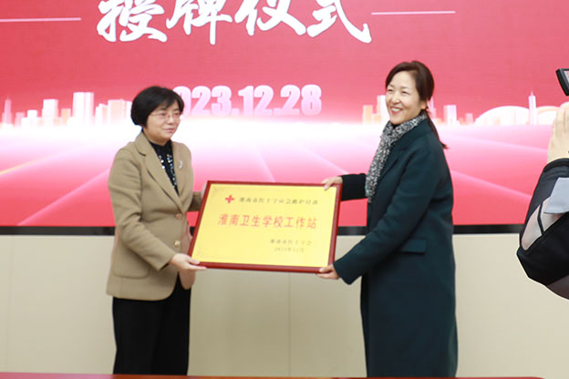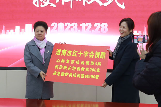仪式上,陈玉琴首先宣读关于淮南联合大学、淮南卫生学校红十字应急救护培训工作站批复。杨倩代表市红十字会分别为淮南联合大学、淮南卫生学校红十字应急救护培训工作站捐赠培训教具和教材。陆晞分别为淮南联合大学、淮南卫生学校红十字应急救护培训工作站授牌。