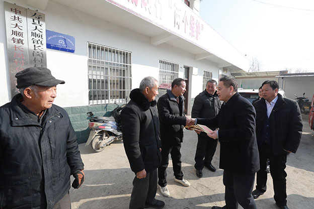 1月11日上午,校党委书记万继军率队走访大顺镇长岗村慰问困难党员和老党员,为他们送去慰问金和祝福,校党委委员、组织人事部部长朱银斌,大顺镇党委书记、镇长参加慰问。