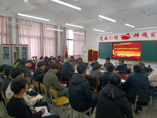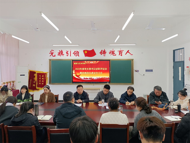 为深入学习贯彻习近平新时代中国特色社会主义思想,全面贯彻落实党的二十大精神,切实提高党支部规范化建设水平。3月19日下午,建筑与艺术学院召开2023年度党支部书记述职评议会暨师德师风建设学习会。校纪委书记郑斌出席会议。学院全体党员教师、党外知识分子和学生代表参加会议。会议由党总支书记陈磊主持。