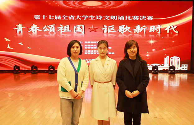 3月23日,由安徽省教育厅主办,安徽师范大学和安徽省朗诵艺术学会承办的第十七届全省大学生诗文朗诵比赛决赛在安徽师范大学花津大礼堂举行,来自全省多所本科和高职院校的70多件作品晋级决赛,经过激烈角逐,我校语言与文字工作委员会和人文与外国语学院选送的作品《信念永恒》获得了二等奖,这是我校首次参加此类赛项,并取得了优异的成绩。