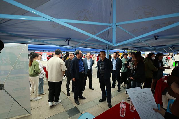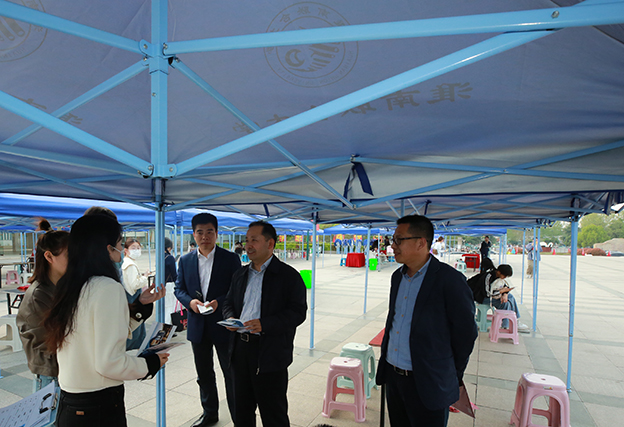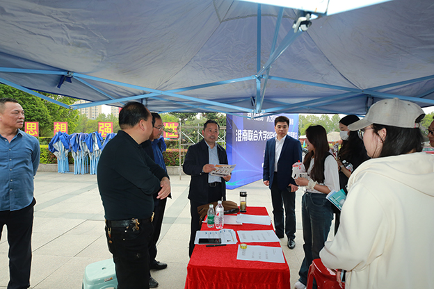 4月12日,春风送岗 人才兴皖 “就”在淮南 淮南联合大学2024届毕业生双选会在我校国旗广场顺利举办。校党委书记万继军,校长李辉,党委副书记白存良,副校长黄伟到场指导工作。学生处相关工作人员,党政办负责人,教务处负责人,各学院负责人深入双选会现场。