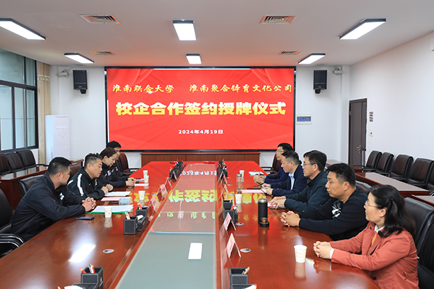 为进一步夯实学生实习实训基础,深化产教融合,4月19日下午,我校与淮南聚合体育文化传媒有限公司在办公楼一号会议室举行校企合作签约与授牌仪式。副校长黄伟出席仪式,仪式由公共教育学院院长刘咸祥主持。