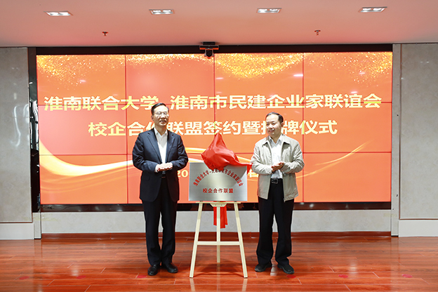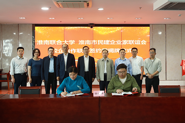 随后民建淮南市企业家联谊会代表致辞。淮南联合大学教务处处长孙晓东、淮南民建企业家联谊会会长刘志凤代表校企双方签约。