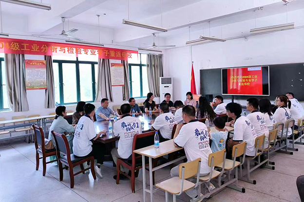 5月18日下午,制药与材料学院2004级工业分析与检验专业10余名校友重返母校并举行座谈会,校党委副书记白存良与校友代表亲切座谈交流。学院党总支副书记王建庭、院长董海丽、专业时任辅导员陈九朋及部分师生代表参加座谈会。