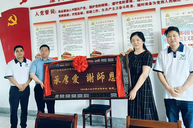 校友们与出席座谈会的师生代表亲切座谈,共忆往昔峥嵘岁月。校友代表向学院赠送匾额,并向出席座谈会的教师送上鲜花。