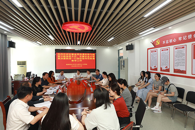 为贯彻落实习近平总书记关于思政课建设的重要指示精神,进一步提高我省高校“形势与政策”课教学工作的实效性与创新性,5月23日上午,安徽省思政课教指委、“形势与政策”分教指委主任委员、安徽农业大学黄洪雷教授,安徽工程大学彭鸿雁教授一行来我校检查指导“形势与政策”课教学。副校长罗鸿,党委委员、宣传统战部部长史学丽,医学院、制药与材料学院、马克思主义学院等部门负责人及部分思政课教师陪同听课。