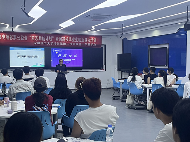 为进一步贯彻落实党中央、国务院“稳就业”“保就业”决策部署,提高毕业生就业能力,全力做好家庭经济困难和就业困难毕业生帮扶工作,助推毕业生更充分更高质量就业。5月18日至26日,“中央专项彩票公益金宏志助航计划”安徽理工大学培训基地为我校2024届毕业生举办了就业能力培训,校党委副书记白存良出席开班仪式,学生处就业指导中心及“宏志助航计划”全体学员参加仪式。