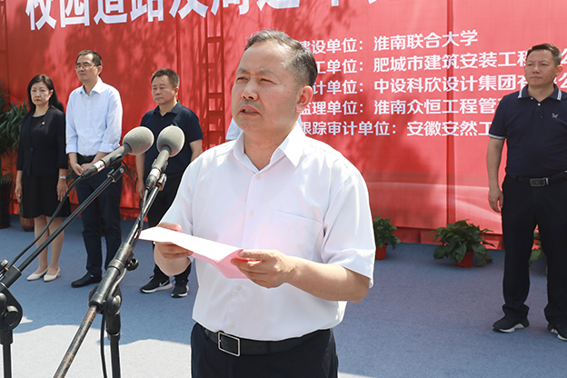 校园道路及周边环境改造提升工程施工单位、设计单位、监理单位、跟踪审计单位代表分别致辞。