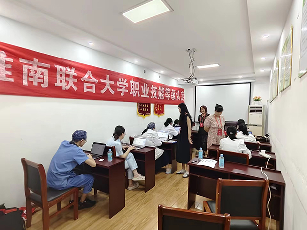 本次认定工作得到了淮南市职业技能鉴定指导中心、安庆市职业技能鉴定中心和安庆潜山新新职业培训学校的支持与协作,经过二个月的精心准备如期顺利进行。考试分理论机考和现场实操两个部分,在不影响口腔门诊部正常营业的前提下,理论机考分三场进行,现场实操在两个门诊部内进行;医生们合理安排门诊和考试,在实际岗位上轮流进行实操考试,整个考试过程中秩序井然,规范有序。