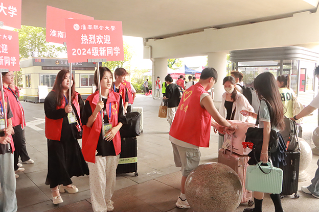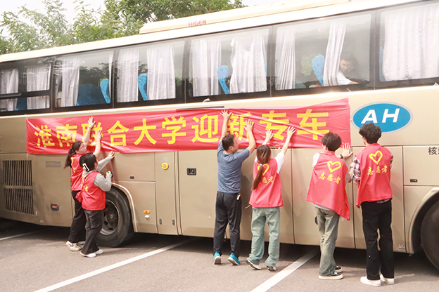 为帮助新生顺利完成报到,学校贴心在淮南火车站、淮南南站、淮南东站、淮南长途汽车站分别设置了接站点,确保每位新生都能安全顺利抵达校园。校园内,安排专车接送新生,帮助报到的新生运送行李。