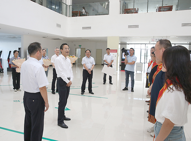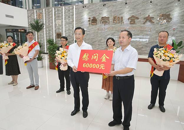师道既尊,学风自善。为庆祝第40个教师节,9月9日上午,市委副书记、市长张志强,市政协主席蔡宜骅,市委常委、市委宣传部部长邬平川,市政府秘书长戴宜斌率队来我校慰问优秀教师代表。校长李辉,党委委员、组织人事部部长朱银斌陪同。