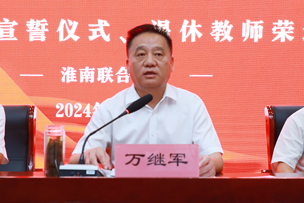 万继军代表学校向全体教职员工致以节日的祝福,向受到表彰的先进个人表示热烈的祝贺,向2024年新进教师表示热烈的欢迎,并向2024年退休教师表示由衷的敬意。他指出,过去一年,在全体师生的共同努力下,学校各项工作都成绩斐然,尤其是育人工作成效显著,教科研硕果累累,产业学院建设突飞猛进,校园基本保障进一步完善。在新学期开始之际,他向青年教师们提出了三点要求,一是深入学习领会党的二十届三中全会精神,坚守“为党育人”初心使命;二是加强师德师风建设,落实“立德树人”根本任务;三是关注自身成长,加快构筑学校“人才高地”。同时,他希望退休教师能一如既往地关心和支持学校发展,引领和帮扶青年成长,讲好和传播联大故事。