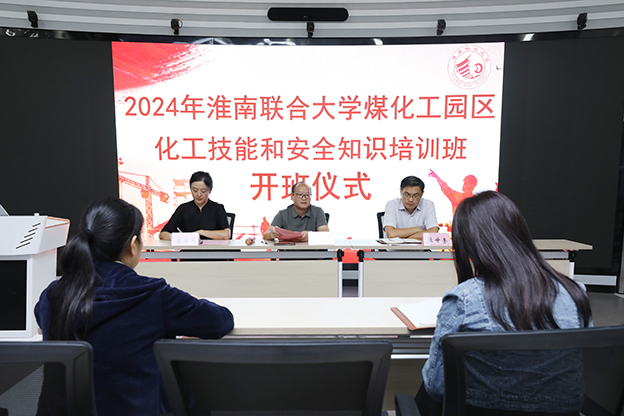 淮南煤化工园区化工技能和安全知识培训班(一期)于2024年9月25日在我校“淮南市化工高技能人才实训基地”正式开班。副校长罗鸿、园区党工委委员管委会副主任张世奎出席开班式。开班式由制药与材料学院院长董海丽主持。