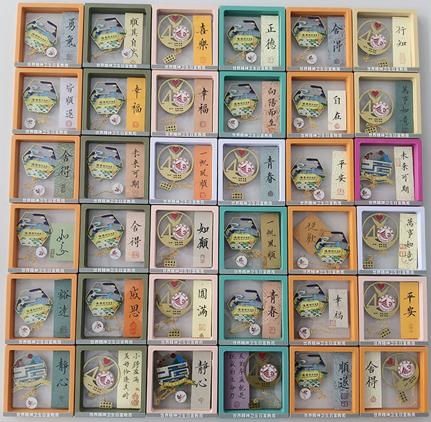 结合建校40周年这一重要时刻,学生处心理健康教育中心精心设计并发放富有象征意义的心理健康纪念品,纪念品中附赠了心理健康相关的祝福语贴纸。这些贴纸温馨提醒着师生们在日常生活中要关注自己及他人的心理状态,培养理性平和的心态。而且在发放纪念品的同时还特别设置了涂鸦绘画区,鼓励学生们通过绘画表达自我、疗愈自我。无论是画板上的画作,还是卷轴上的图画,都充满了创意与活力,展现了学生们积极向上的精神风貌。这些涂鸦作品不仅为校园增添了一抹亮丽的色彩,更让师生们在欣赏的同时感受到了艺术的魅力和心理健康的重要性。