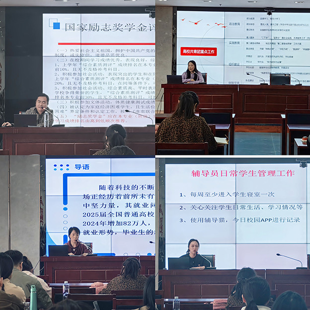 此次培训内容丰富全面,旨在提升辅导员队伍的专业素养和业务能力,为学生的成长与发展提供更优质的服务。培训涵盖了国家安全教育、学生管理、团学知识、资助、就业、心理健康、征兵工作等多个关键领域,详细介绍了辅导猫、智慧学工、第二课堂成绩单管理系统操作方法等实用内容。