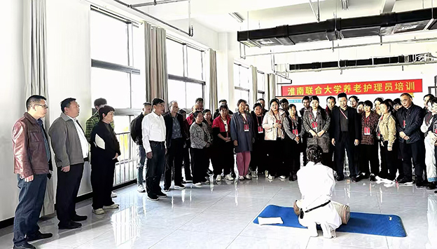 10月30日,受淮南市民政局委托,由我校承办的淮南市首届养老护理员培训班在双创楼开班。培训过程中,校党委书记许德寿、校长李辉分别带队查看了培训班教学、住宿、实训等场所,并与培训班学员亲切交谈。副校长罗鸿,医学院负责同志陪同。