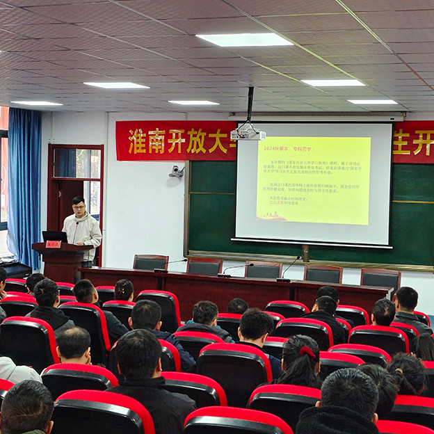 为帮助新学员高标准、高质量按期完成学习任务,进一步提升开放教育教学质量,11月9日上午,淮南开放大学在一楼报告厅举行2024年秋季新生开学典礼,副校长罗鸿出席典礼,继续教育学院领导班子、全体教职工、2024年秋季新生代表和老生代表参加开学典礼。开学典礼由继续教育学院党支部书记李明主持。