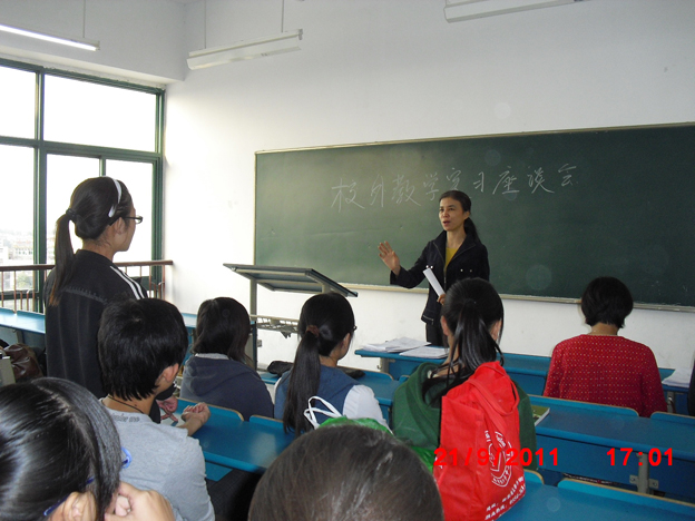 外语系于9月21日、22日和23日分别召开了校外教学实习工作总结座谈会。座谈会由系主任马莹主持,专业英语教研室主任邵卫平,班主任白雪,辅导员李婧,以及2010级应用英语专业全体同学参加了座谈会。