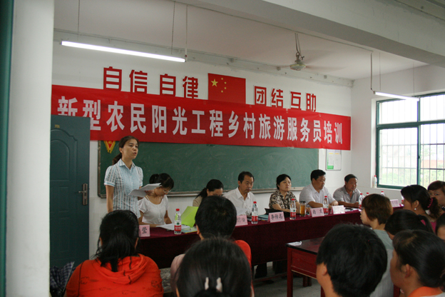 为了提高农民的整体素质,转移农村富余劳动力,增强农民的从业技能,培育新型农民,加快社会主义新农村建设,特举办了此次培训。市农委李科长对此次培训的重要性和必要性作了详细阐述,对国家关于阳光工程的惠民政策作了深刻剖析。山王镇鲍书记对我校在此举办乡村旅游服务员培训及所做的工作表示感谢,对学员提出了相应的要求,他希望参训学员能够把握好此次难得的机会,认真学习,不断提高自身综合素质,力争成为社会主义新农村建设需要的高技能人才。
