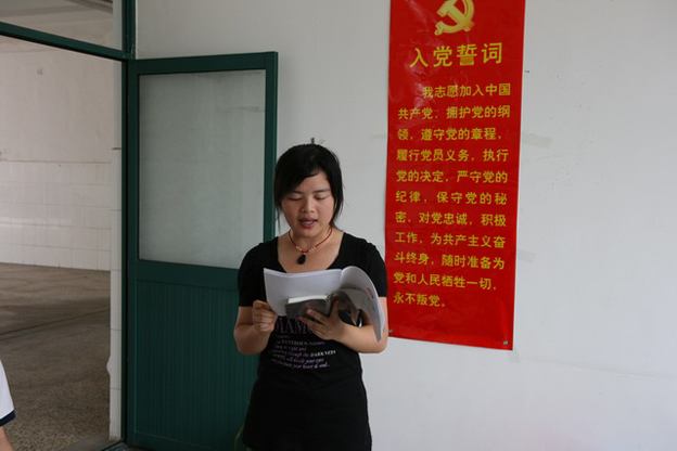 我系于7月1日上午召开了党员发展支部大会。会议由建工系书记廖美华同志主持,此次会议分三个议程:一、由四位发展对象宣读各自的入党志愿和个人的情况介绍,紧接着由培养人对四位发展对象在考察期里的表现进行陈述;二、由支委会成员对四位发展对象进行票决;三、由预备党员表达入党的决心,最后新党员在高红霞老师的带领下进行入党宣誓。