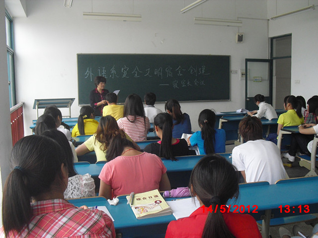 首先系党团事务秘书丁老师通报了本系安全文明宿舍创建工作的进展情况,进一步明确了寝室长的工作职责,特别指出寝室长要对本寝室的安全文明创建工作负责,排出值日生表,做好本寝室的安全卫生管理工作。并要求学生会生活部定期开展全系寝室卫生大检查,做好检查记录。随即,系党总支书记对11级学生宿舍情况进行了详细摸底,号召同学们要从大局出发,积极配合,以保证系部宿舍调整工作的顺利进行,并且强调:要积极争创安全文明宿舍,希望各寝室长能够充分发挥表率作用,带领宿舍同学讲文明话、办文明事、做文明人,围绕清洁卫生、遵守纪律、安全防范、团结互助、学习氛围、文化建设六个方面开展安全文明宿舍的创建工作,将外语系“安全文明宿舍”的创建活动深入持久地开展下去,为营造洁净、健康、和谐的宿舍环境而积极努力。