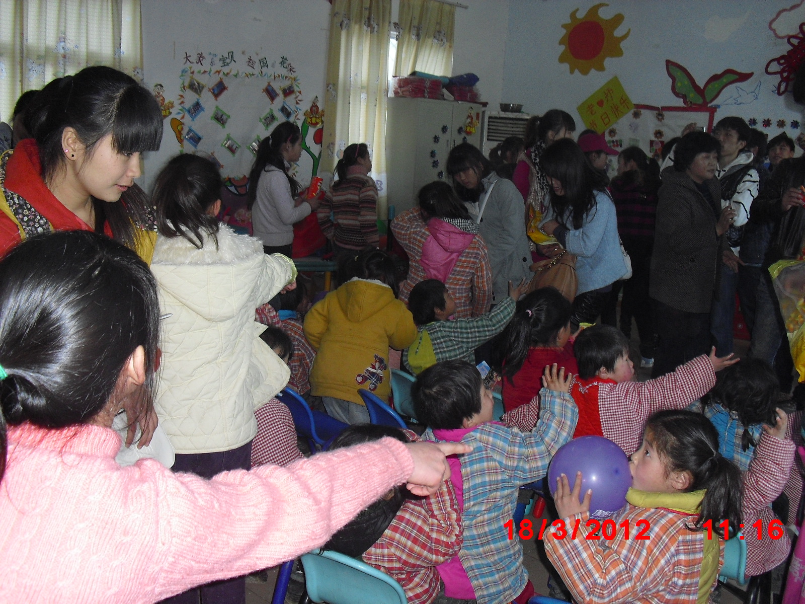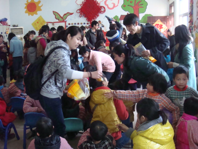 当大家看到或兔唇、或智障、或青光眼的孩子的时候,心情再也无法平静了,所有人都被那些身陷残疾,丧失生活能力的孤残儿童的不幸遭遇深深触动了。系党总支书记关切地向福利院顾院长详细地询问了孩子们的生活情况。同学们纷纷为孩子们擦脸、送食物、梳小辫,陪孩子们一起玩玩具、做游戏。亲切的话语,灿烂的笑容拉近了大家与孩子们之间的距离,福利院处处洋溢着春天的温暖。