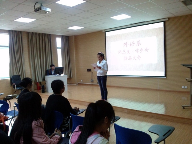 外语系团总支、学生会换届大会于10月18日下午,在实训楼四楼语言情景实训室准时召开。会议由第十四届团总支副书记主持,系党总书记、党团事务秘书、各班班主任及学生干部参加会议。