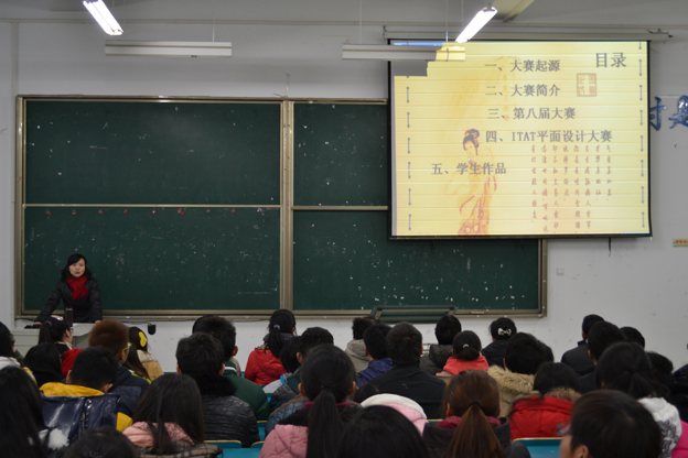 会上,陈伟副教授详细介绍了全国信息技术应用水平大赛的形成和形式,讲述了备赛、参赛流程与赛事中的应对技巧,以及参加全国总决赛时的整个过程。她在讲述中传达的不仅有信息和经验,还特别注重启发同学们如何形成学习技能、创新技能、发挥团队协作和人人参与的良好学习氛围。希望同学们能保持自信、挑战自我、手脑并用,找准理论知识与实际操作的结合点,不断提高自身职业技能。2011级图形图像制作专业陶雪灵作为获奖选手代表展示了获奖作品,并结合自己的学习经历重点讲述了赛后感想、体会与收获。最后,校关工委老领导对此次参赛的老师和同学给予了高度评价,鼓励同学们牢固掌握专业知识,在今后的比赛中取得更加优异的成绩,为学校争光添彩。
