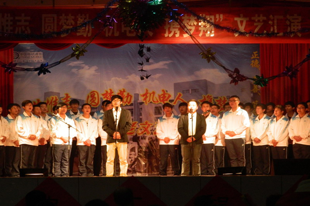 本次晚会在热情四射的现代舞中拉开了帷幕,唯美动听的情歌对唱凸显了当代大学生青春热忱。《唱响中国梦》的朗诵诉说了机电人的大学梦、未来梦。一曲曲宛如天籁的歌声感染着同学们的心灵,一支支轻盈优美的舞蹈吸引着同学们的眼球。我系的老师和老生们更是不遑多让:倾诉离别不舍情《当我想你的时候》的老生之曲、激励握现在《原来你也在这里》的老师之歌,更是让晚会高潮迭起。最后,本次晚会在大合唱《走向复兴》中完美谢幕。