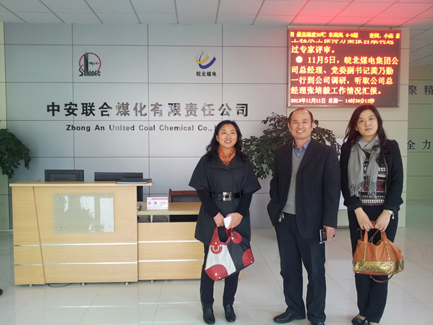 11月11日下午,化工系宋主任一行四人至中安联合煤业化工有限公司进行了参观,公司蒋总经理携同嵇主任给予了热情的接见。中安联合煤业化工有限公司是根据安徽省政府与中国石化集团战略合作协议设立的大型煤化一体化公司,由中国石化与皖北煤电合资组建。该项目是中国石化、安徽省重点建设项目,淮南市“一号工程”,对促进安徽省、淮南市地方经济转型发展、结构优化调整,推动安徽省煤化工基地建设,具有重要的战略意义。