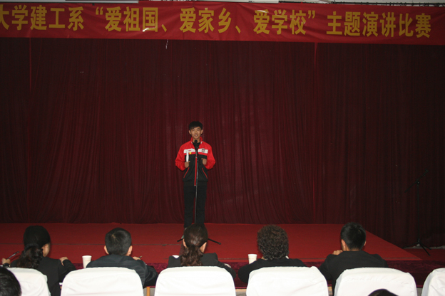 为配合校思政部演讲比赛,丰富学生校园文化生活,进一步培养和提高学生的综合素质,促进学生全面发展,11月8日下午,我系在西220报告厅举办了“爱祖国·爱家乡·爱学校”新生演讲比赛,系领导和教师代表作为评委参加了此次比赛。