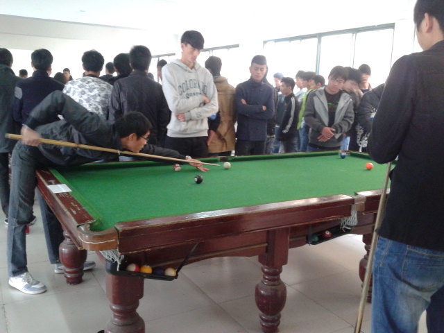2013年11月25日下午我校2013年大学生台球比赛在大学生体育活动中心台球厅圆满结束。此次比赛共有160多人参加比赛,经过多伦角逐,最终男子组郑炳献同学和女子组李萍同学以稳定的发挥取得了比赛的胜利,分获男、女组冠军。