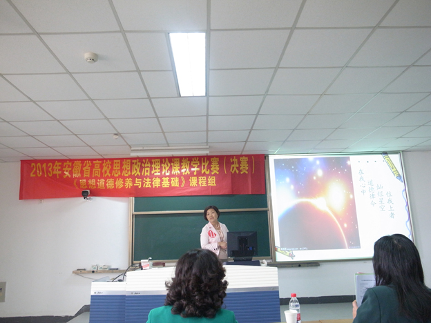 10月27日至28日,由省委教育工委、省教育厅举办,省高校思想政治教育研究会思政理论课教学分会承办的安徽省首届高校思想政治理论课教学比赛决赛在安徽大学磬苑校区举行。我校思政部组团参加观摩、比赛,并取得可喜成绩。