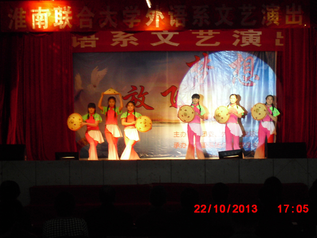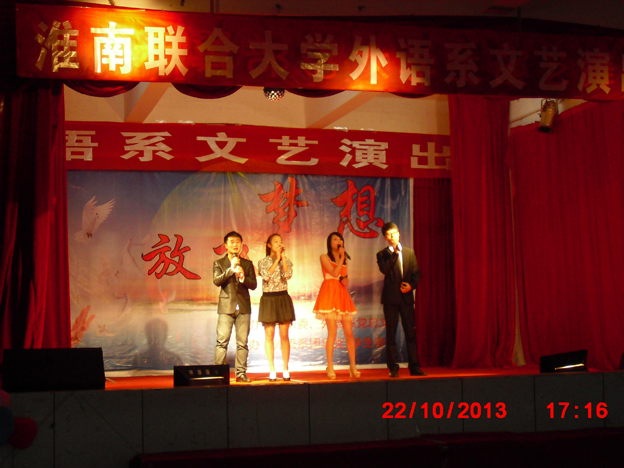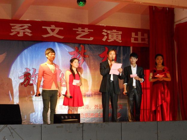时至深秋,风变得强劲起来,校园被染成了黄绿色,周围的一切开始变得有点萧瑟。似乎在诉说着离别。这个秋天在喜迎新同学的同时,也要送走新一届的毕业生。此次文艺演出外语学子几乎人人是观众,个个是演员。相信在学校各级领导的亲切关怀与大力支持下,外语人的别样风采定会焕发出蓬勃生机,为进一步促进学生文艺修养和综合素质的提高,推动学校精神文明建设再上新台阶做出应有的努力。