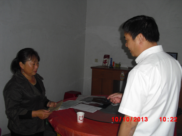 慰问组乘坐长途汽车经过三个小时的颠簸,来到了贫困学生家中。在这里,系党总支书记与贫困生家长进行了亲切的交流,详细地了解了这个家庭当前的收入来源与面临的实际困难等情况,并向学生家长全面地介绍了国家及学校关于大学生资助的政策、做法及成效,同时代表学校送上了慰问金。当受访家长在提及孩子父亲病故、繁重债务和家庭窘困的生活状况时不禁泪流满面,压低着抽泣声连忙感谢学校和老师的关心和帮助,她用最朴实的语言表达了对学校及老师的感激之情。