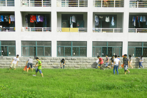 此次活动从清理男生宿舍楼下的垃圾杂物开始,对男生宿舍楼周围环境的垃圾、杂物和一些卫生死角进行了地毯式的清除。同学们个个精神饱满,干劲十足,不怕苦,不叫累,不嫌脏。经过一个下午的努力劳动,环境得到优化,死角恢复了整洁。