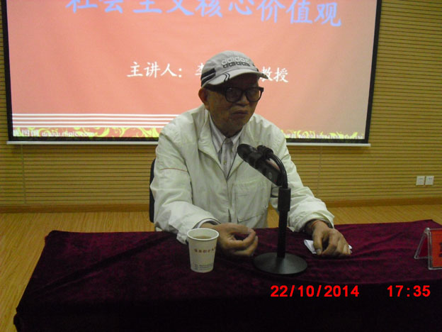老校长高新民同志即席有感而发,他对李教授的报告给予了高度赞扬,要求与会人员要把李教授的讲座内容作进一步的研读,并落实到行动上,他还结合实例鼓励外语系的学生们做一个自立自强适应时代发展的大学生。