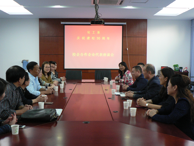 正值庆祝我校三十周年华诞之际,化工系加强校企合作,于10月24日,邀请部分企业代表来校,座谈会在我校实训楼会议室举行。