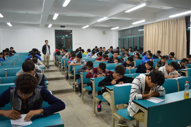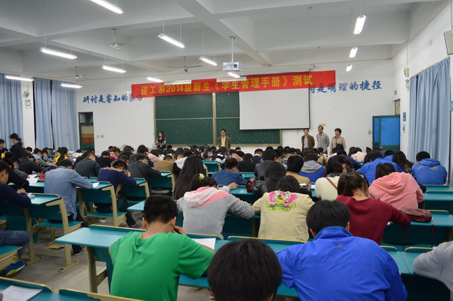 本次考试的内容是考查2014级新生对《学生管理手册》的掌握情况,考试采用笔试形式,整个考场秩序井然。